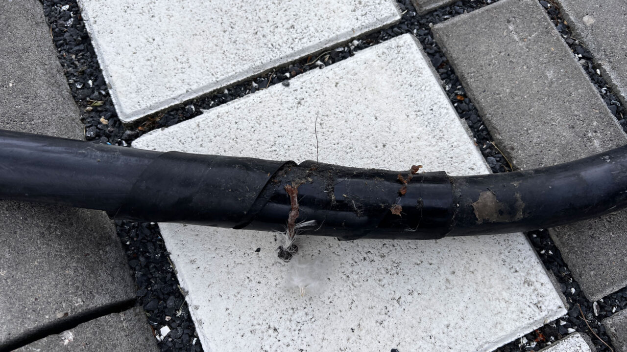 Ob der Mantel des Hochvoltkabels defekt ist, lässt sich mit bloßem Auge nicht feststellen – die Finger lässt man trotzdem lieber davon. Auf einem Supermarktparkplatz in Landshut ist ein Teil des CCS-Steckers an einem Schnelllader der Energie Südbayern abgebrochen. Es ist erkennbar kein frischer Schaden.
