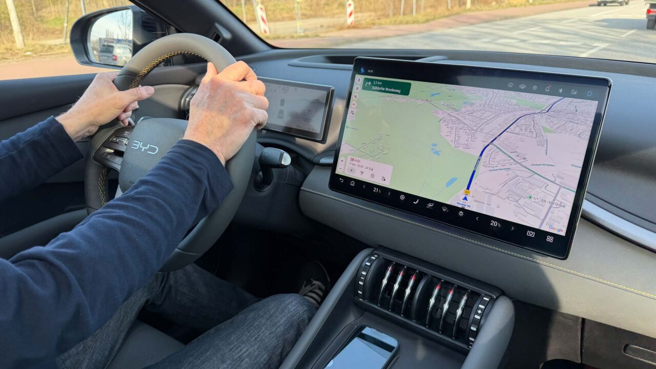 Leider lässt sich der Bildschirm im Querformat nicht wie bei anderen BYD-Modellen ins Hochkantformat drehen. Laut Auskunft des Herstellers liegt das an der GAS-Software, die keine Option für andere Bildschirmausrichtungen bietet.